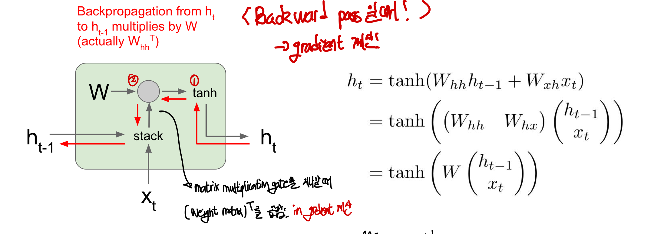 vanila RNN에서는 매 step마다 tanh를 통한 backprop을 해야함 gradient를 구할 수 있었음