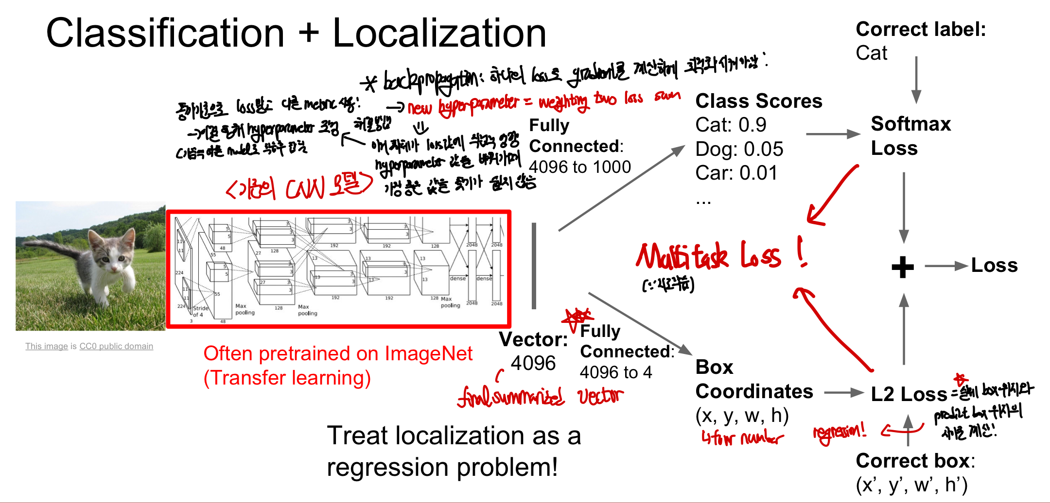 - Regression: output의 개수가 정해져있지 않고 물체의 각 좌표를 regression 해야하기 때문에 예측하는 것이 까다로운데 각 image마다 물체의 ouput 개수가 달라 얼마나 많은 object를 찾아야할지 모르기 떄문에 localization하는 것이 사실상 불가능해 범용적인 모델을 구성하는 것이 어렵다 (