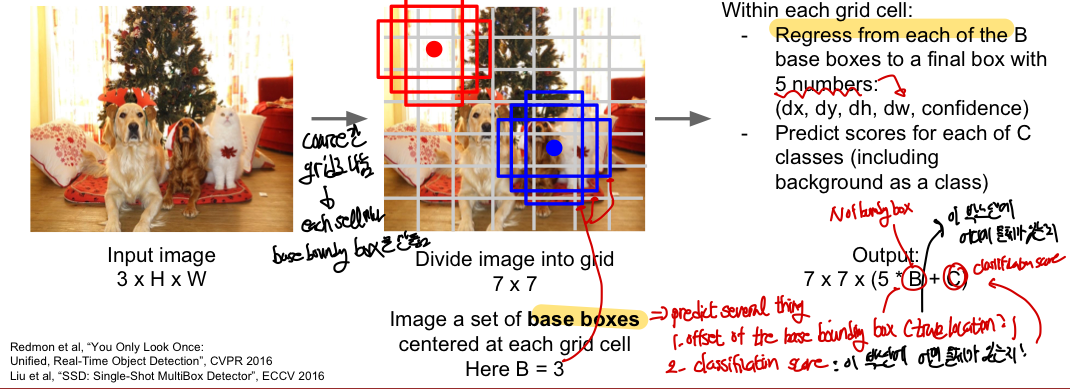 - 입력 image를 일정한 간격의 grid로 나눔 (아래 그림에서는 7X7로 나눔)