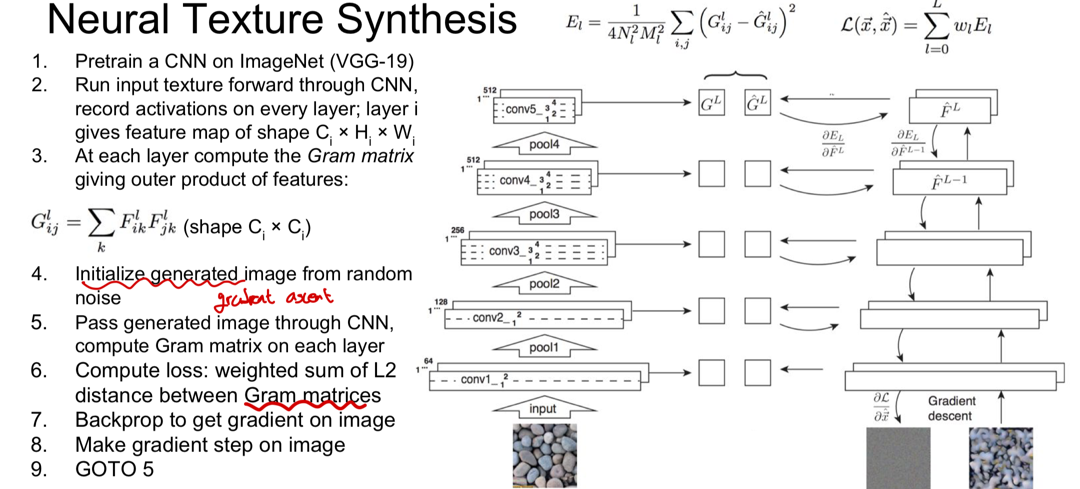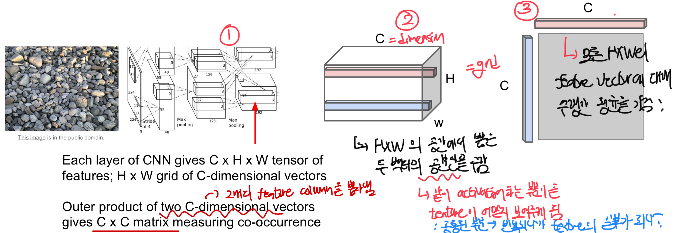 - 이 gram matrix를 통해 input image의 질감(texture)을 알 수 있음
