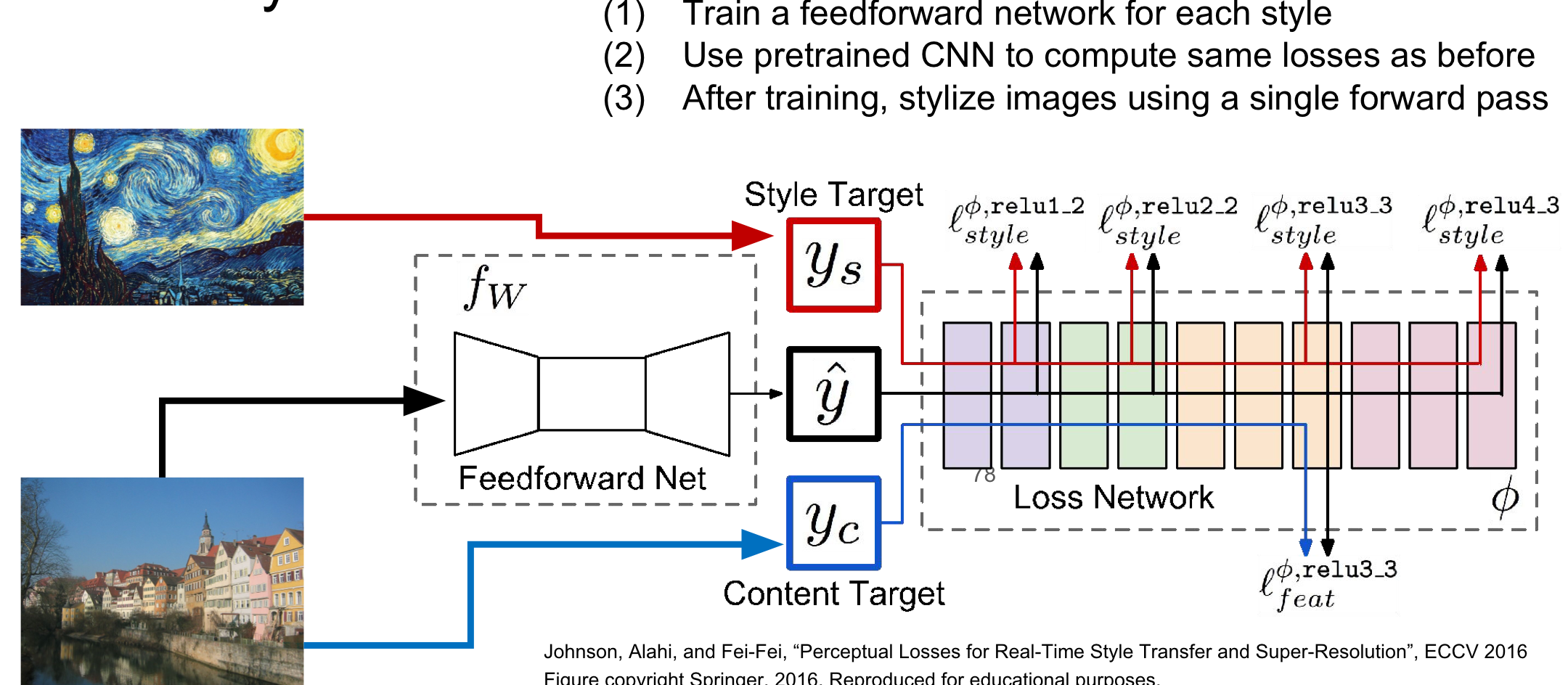 3. training이 끝난 후 style하게 만들어줄 image가 single forward pass를 통해 사용됨