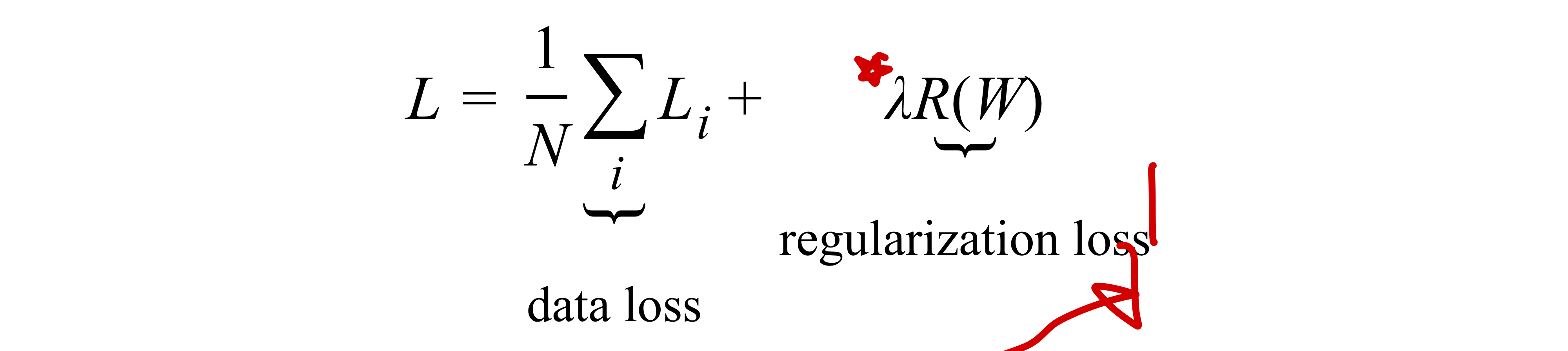- loss가 0은 곧 training data에 완벽한 W이므로overfitting 을 유발할 수 있다 ➡️ overfitting 문제를 해결해야함