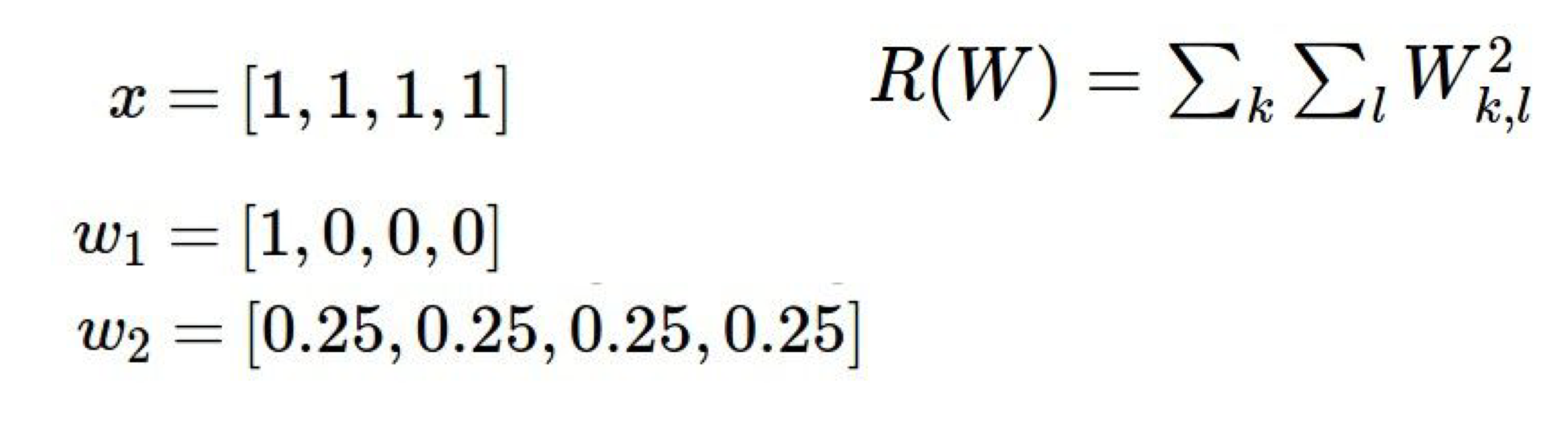 위에서 제기한 질문과 같이 loss를 최소로 하는(혹은 0인) 여러가지 W가 같은 결과값을 낼 수 있기 때문에 이러한 모호성 (ambiguity)을 해결해야한다. 이 뜻은 곧 W가 하나의 값으로 일반화하지 못해 새로운 데이터에 대한 일반화 성능이 보장하지 못한다고 볼 수 있다. 이런 경우애는 어떤 feature가 중요한지, 어떤 패턴을 학습했는지 확인하기 어려우며 과적합(overfitting)의 위험도 존재한다